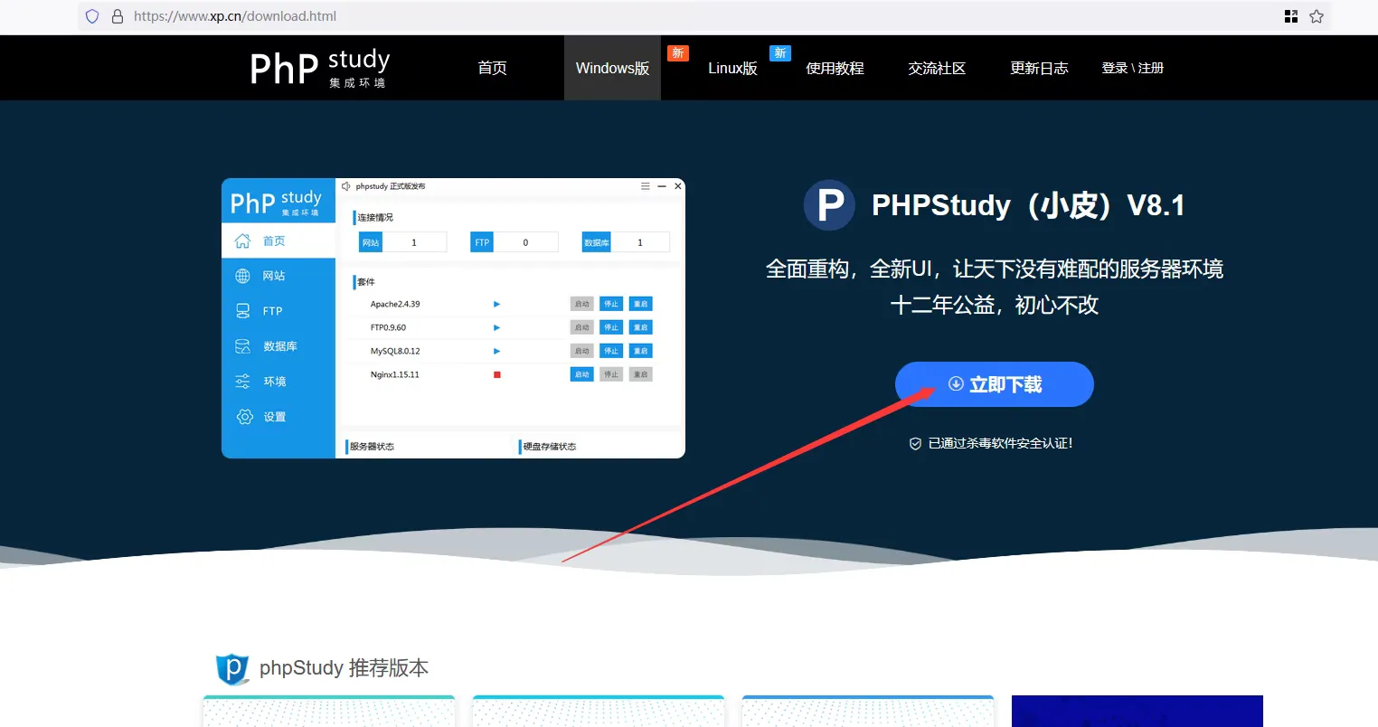 Section titled “Windows 直接安装”你可以选择直接下载安装包来安装,如果觉得麻烦,请看下面的 使用工具安装 或 Linux 命令行安装