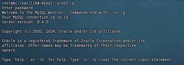 mysql -uroot -p按提示输入密码登录到 MySQL