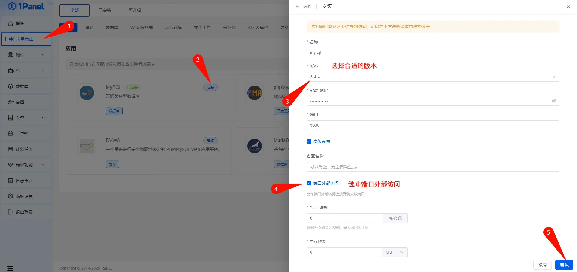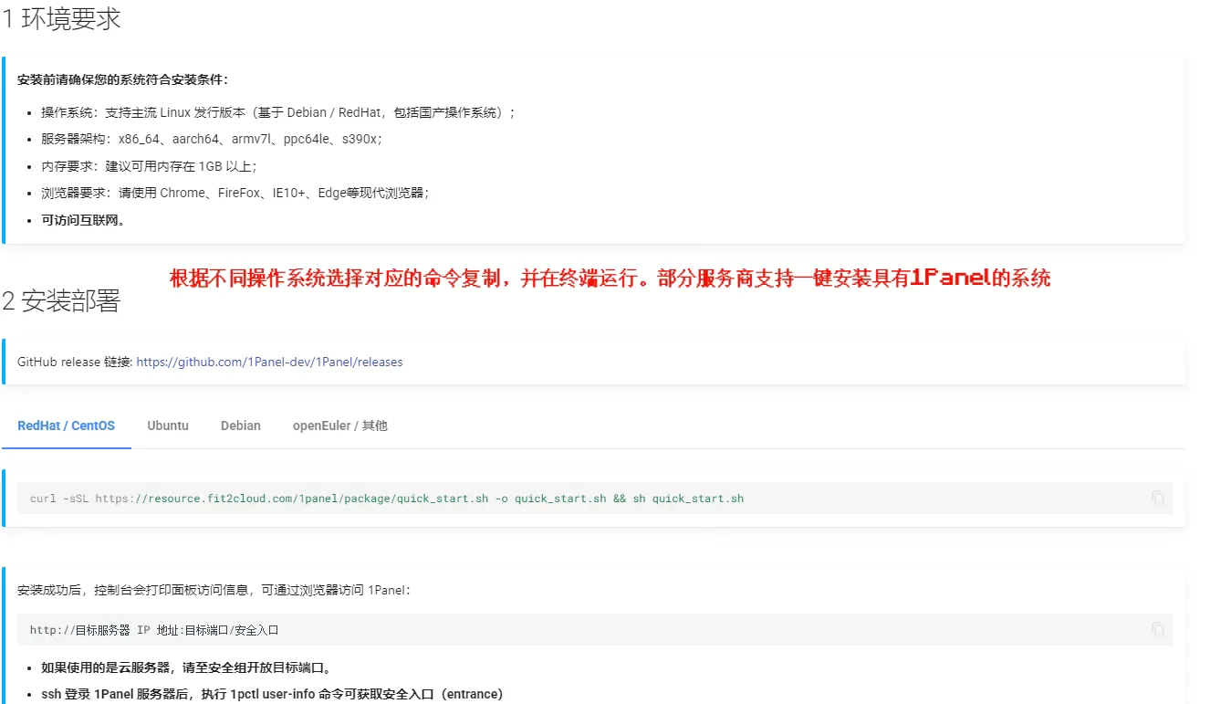Section titled “1Panel 面板”安装,配置面板