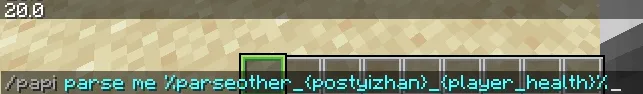 /papi ecloud download ParseOther/papi reload%parseother_{玩家名称}_{不带百分号的变量}%%parseother_unsafe_{玩家名称变量}_{不带百分号的变量}%%parseother_{uuid}_{不带百分号的变量}%%parseother_unsafe_{玩家 UUID 变量}_{不带百分号的变量}%例如,查看玩家 postyizhan 的 %player_health% 变量返回值